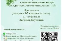 Впервые на февральских каникулах открывает свои двери тематический лагерь «Академия современных открытий».