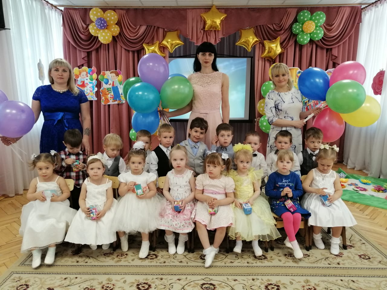 Малышам, которым не было еще трех лет, воспитатели заботливо и терпеливо помогли пережить адаптацию; обучали рисованию, лепке, танцам, различным играм и т.д. Помогли стать самостоятельнее и увереннее. Не могу не упомянуть креатив Реутовой Е.Е., сколько оригинальных поделок она сделала с детками, готовила спектакли, устраивала веселые праздники! Зажигательный и яркий Праздник смеха, трогательный Выпускной, посвященный окончанию первого учебного года, не оставили равнодушными никого. Фото и видео с этих мероприятий можно не только с удовольствием пересматривать, но и с гордостью показывать родственникам и друзьям!